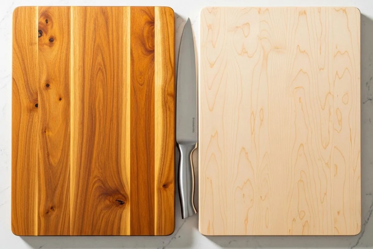 This maple vs acacia cutting board comparison reveals distinct advantages for each wood. Acacia offers superior moisture resistance and striking visual appeal at accessible prices, while maple delivers the professional standard with optimal knife care and proven longevity.