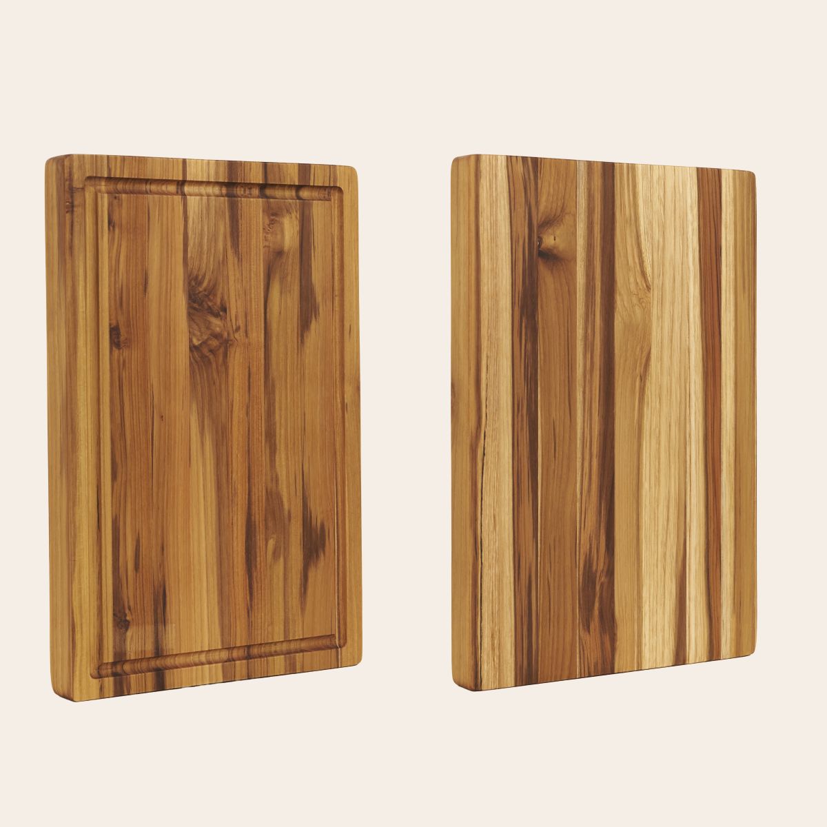 Renowned for its high natural oil content and resistance to moisture, teak is one of the most trusted hardwoods for kitchen use. Each board showcases stunning golden-brown grain patterns unique to the wood, giving it a warm and refined character that complements any kitchen style—from rustic to modern. The edge grain construction not only enhances durability but also preserves your knives, making it a practical companion for daily use.